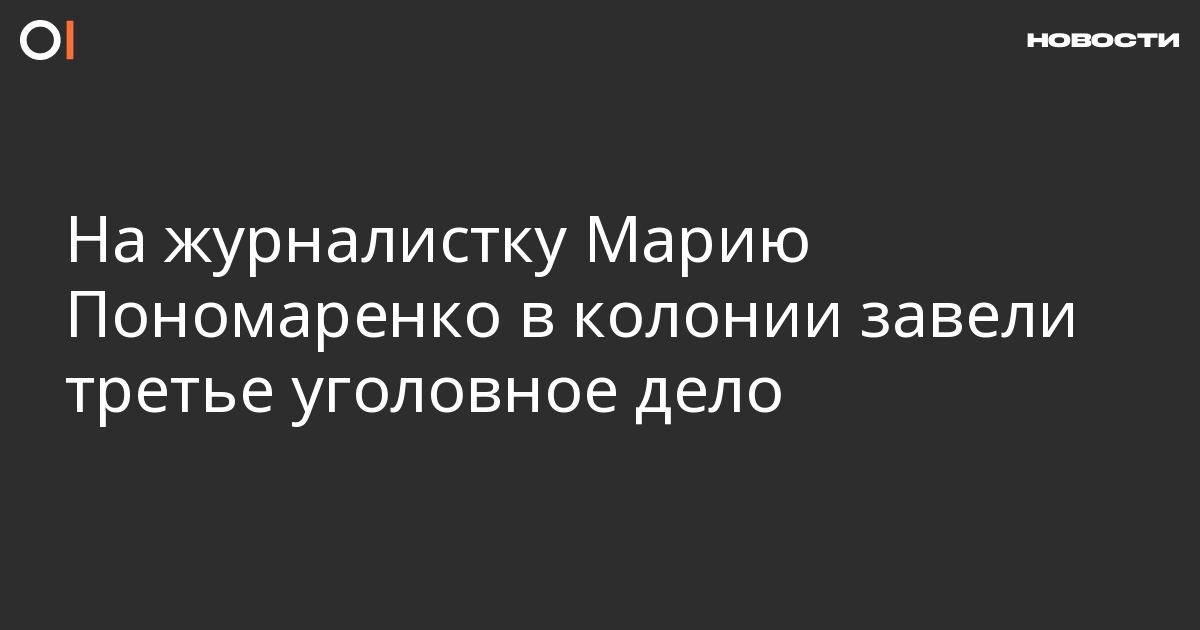 На осужденную журналистку Марию Пономаренко завели уже третье уголовное дело — о причинении нетяжкого вреда здоровью (ч. 2 ст. 321 УК). Об этом сообщает группа поддержки политзаключенной.