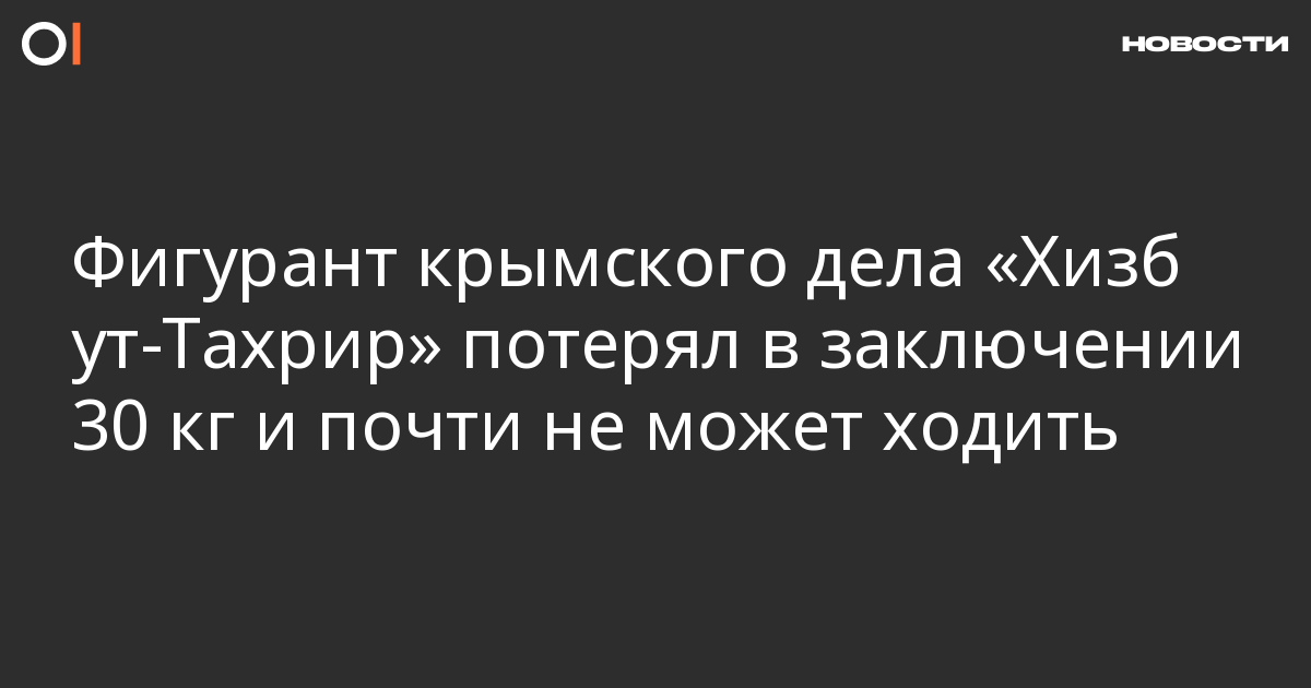 Фигурант крымского дела «Хизб ут-Тахрир» Яшар Шихаметов потерял в заключении 30 килограммов, кроме того, он почти не может ходить из-за сильных болей в суставах. Об этом пишет «Крымская солидарность» со ссылкой на жену заключенного.