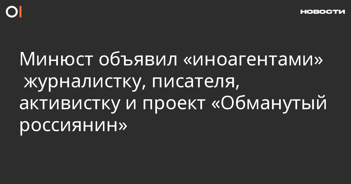 Минюст внес в список «иностранных агентов» еще четверых человек и один проект, сообщается на сайте ведомства. В реестр попали: