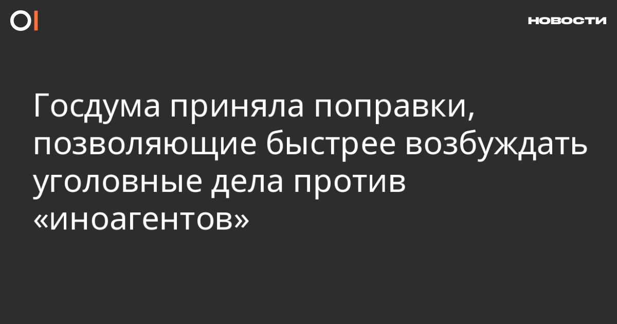 Госдума сразу во втором и третьем чтениях приняла законопроект, который позволит силовикам быстрее возбуждать уголовные дела против людей, внесенных в список «иностранных агентов», сообщает «ДумаТВ».