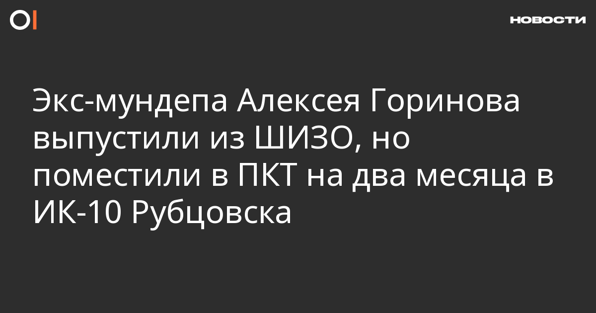 Бывшего муниципального депутата Красносельского района Москвы Алексея Горинова выпустили из ШИЗО в ИК-10 Рубцовска (Алтайский край) — там он провел два месяца, и поместили в ПКТ на такой же срок. Об этом ОВД-Инфо сообщил юрист Горинова Денис Шедов.